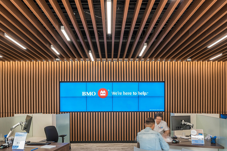 This fully renovated branch combines updated signage and exterior upgrades with a modern, functional interior. Natural finishes and contemporary design elements create a welcoming space that is efficient, elegant, and aligned with BMO’s brand standards.